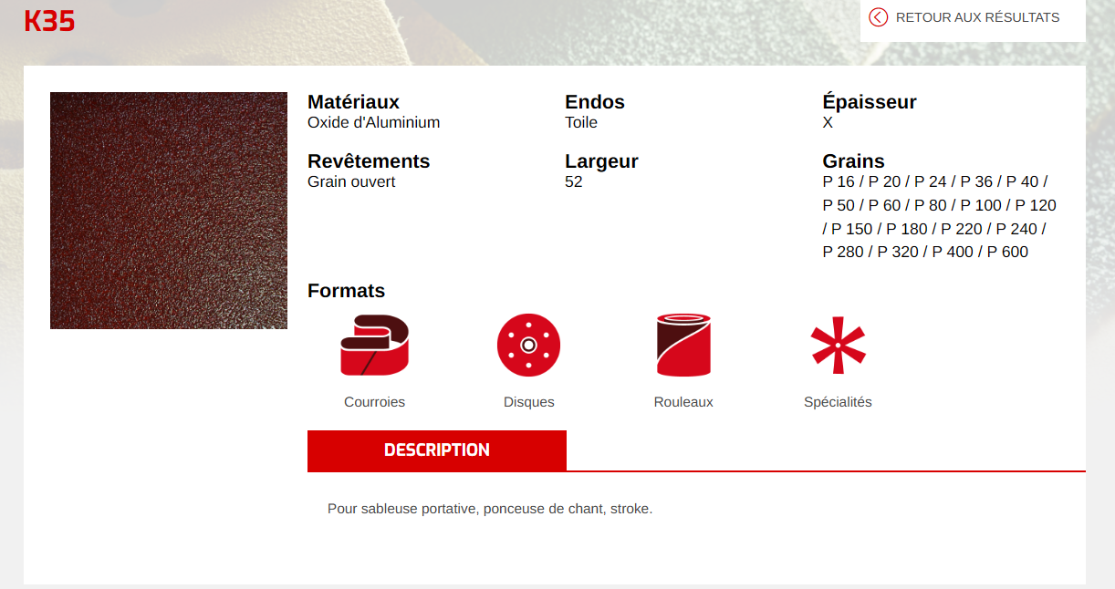 Le K35 est un matériel à base d’oxyde d’aluminium avec un endos de toile .